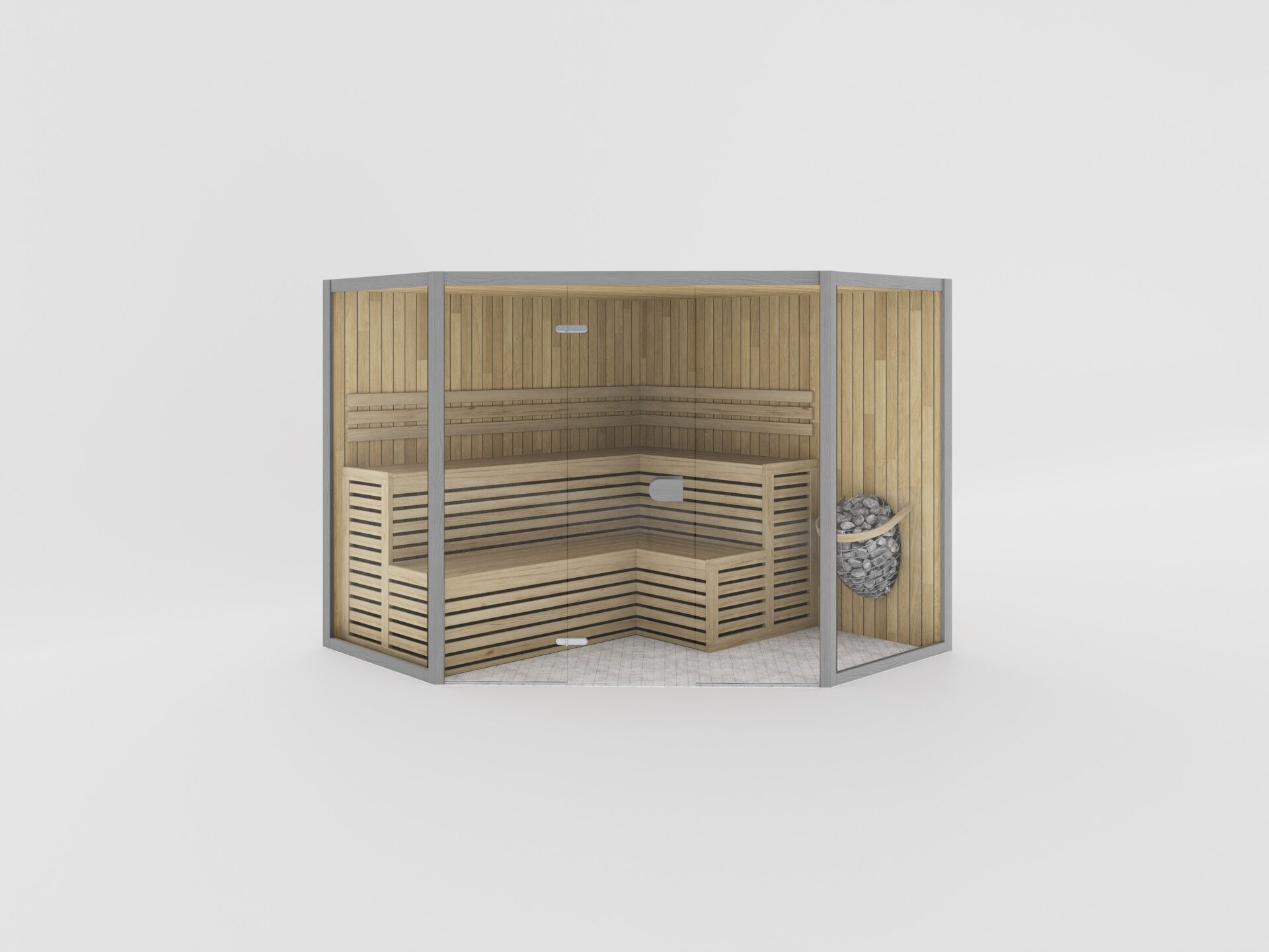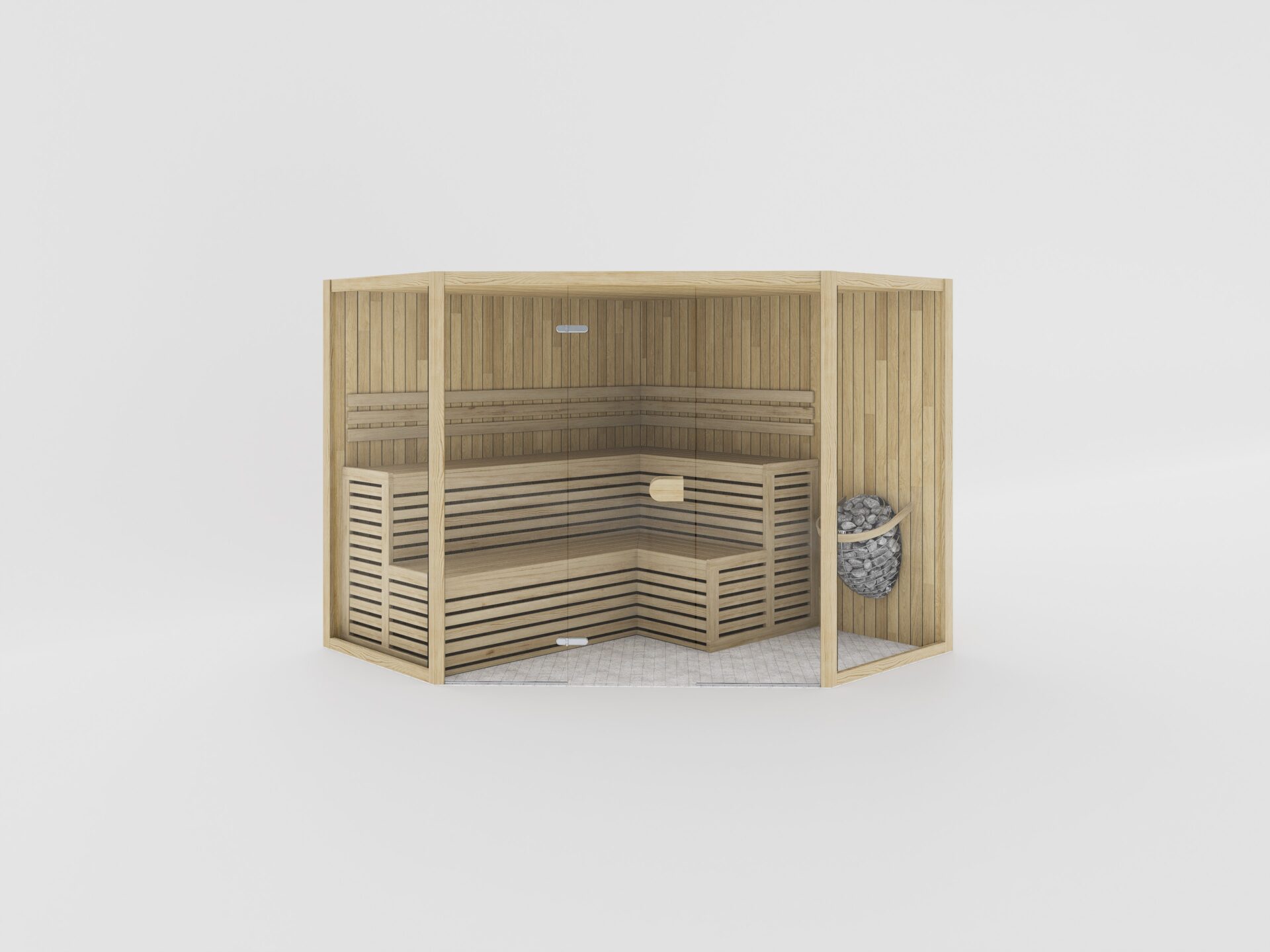 A balanced, space-efficient indoor sauna designed for up to two people. Tyra Classic combines clean, modern aesthetics with a calm, open feel, enhanced by its glass door and precise detailing. Ideal for those who value simplicity without compromising comfort. The entry door can be customized to suit your interior layout.