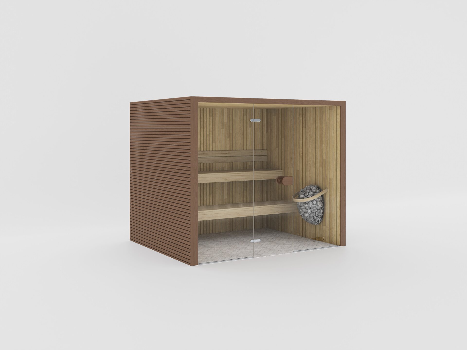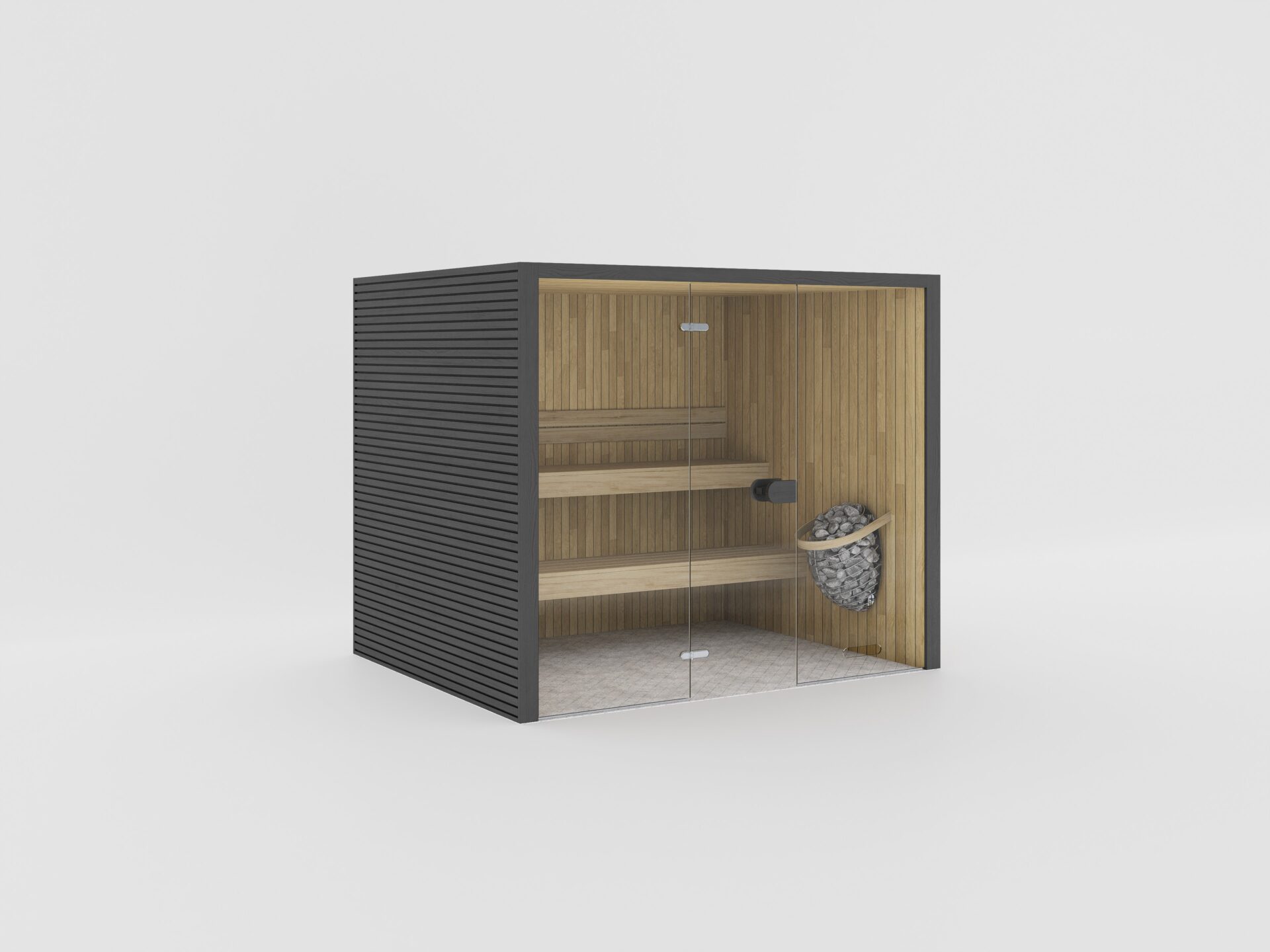 A balanced, space-efficient sauna designed for up to four people. Jonas Classic outdoor sauna combines clean, modern aesthetics with a surprisingly open feel, thanks to its large glass panel and precise detailing. Ideal for those who value simplicity without compromising comfort. The entry door is fully customizable and can be installed on either side.