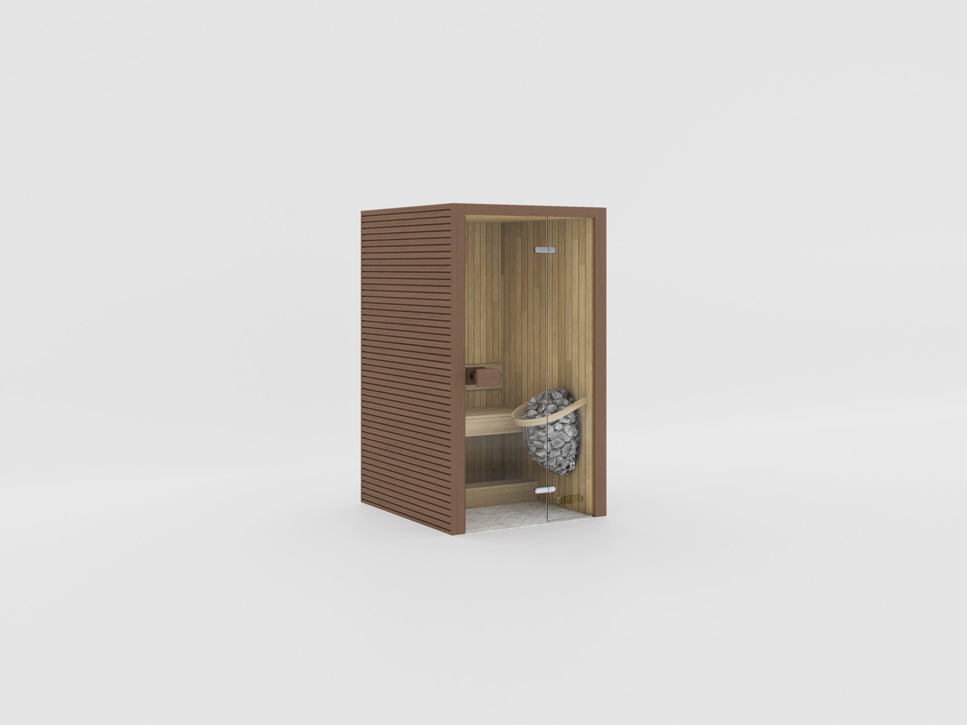 Designed for compact living, Tyra Micro delivers a complete sauna experience in a minimal, vertical footprint.