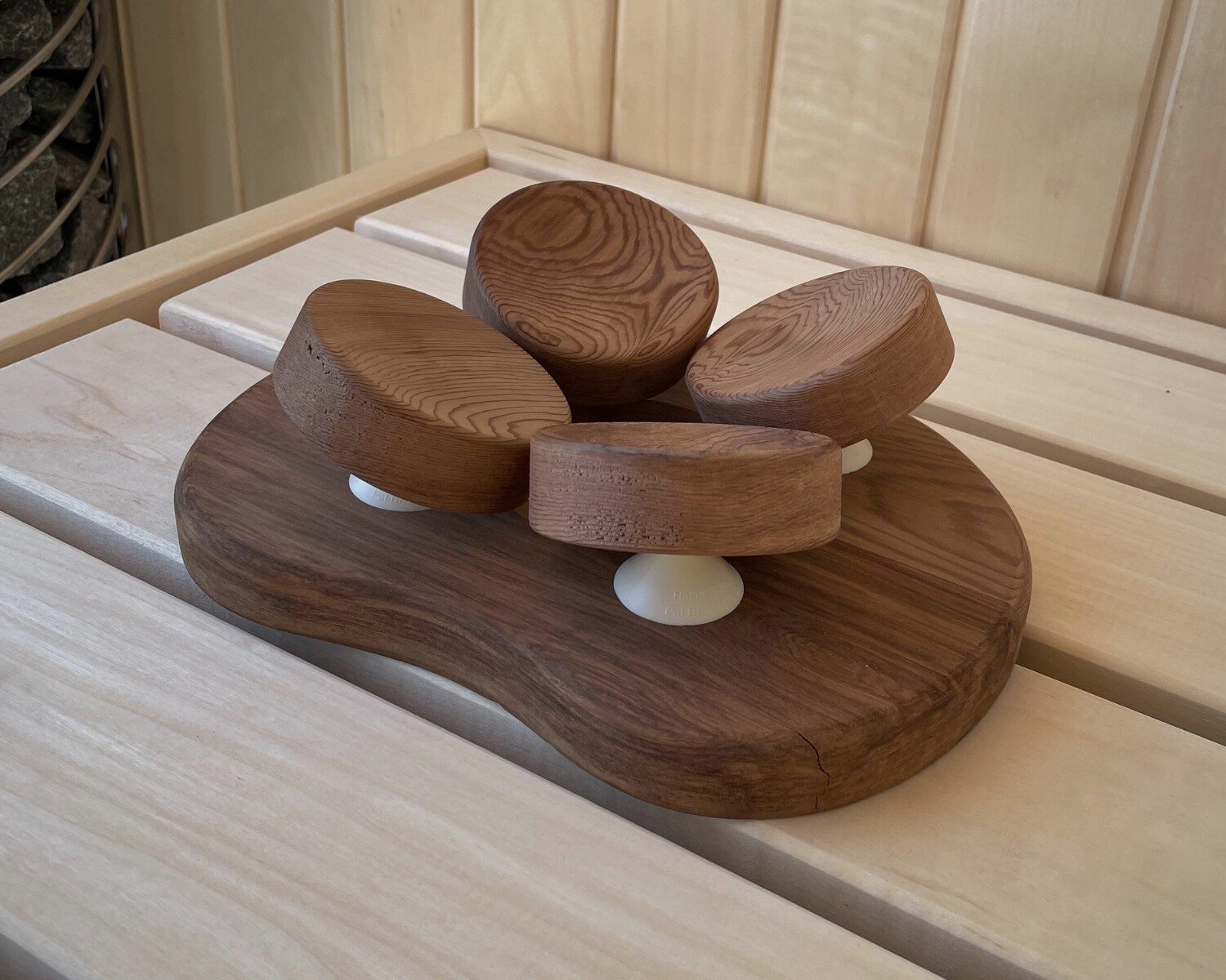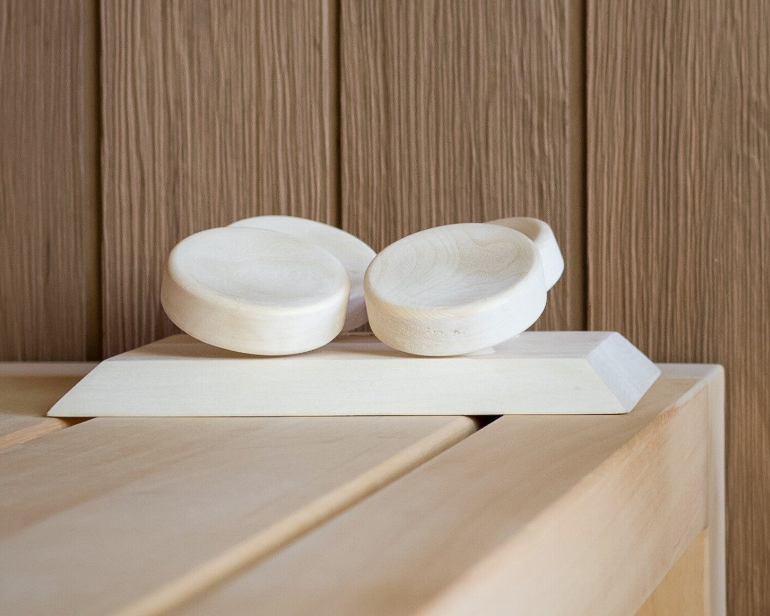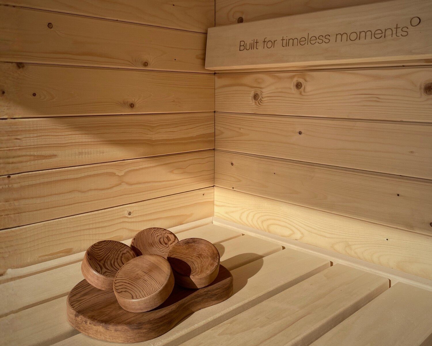 - Its flowing shape promotes the ultimate state of relaxation, whether in a Finnish or infrared sauna.