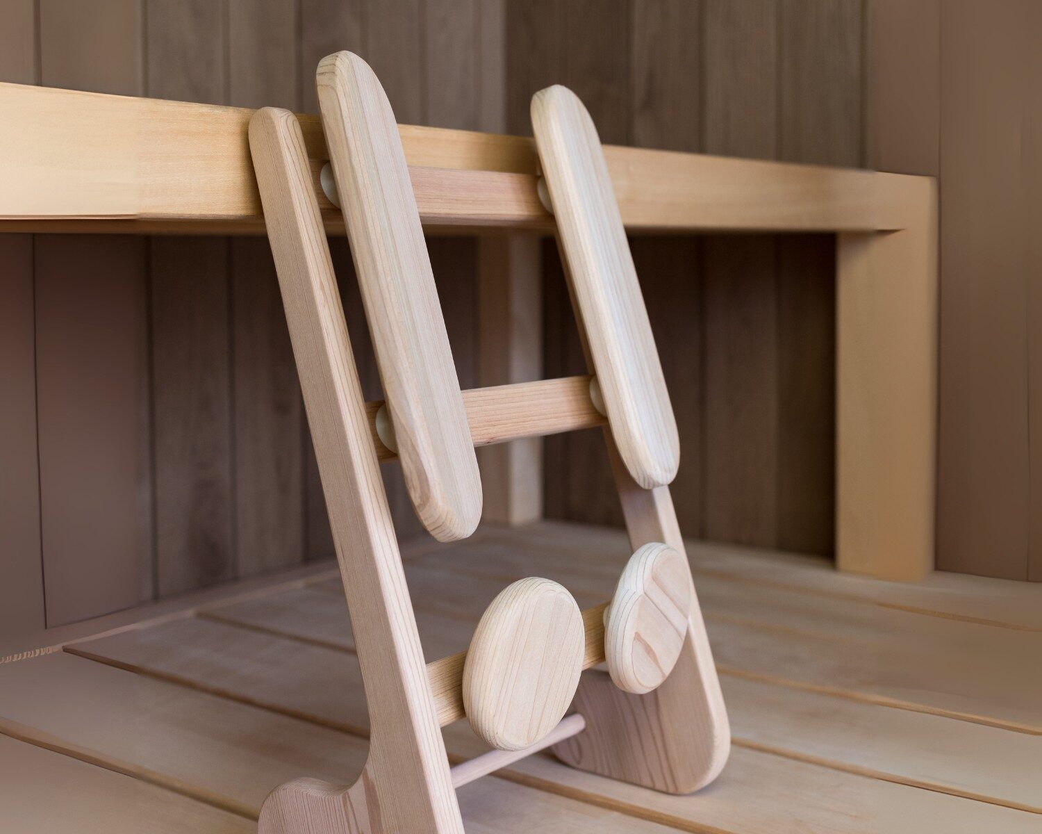 - Its flowing shape promotes the ultimate state of relaxation, whether in a Finnish or infrared sauna.