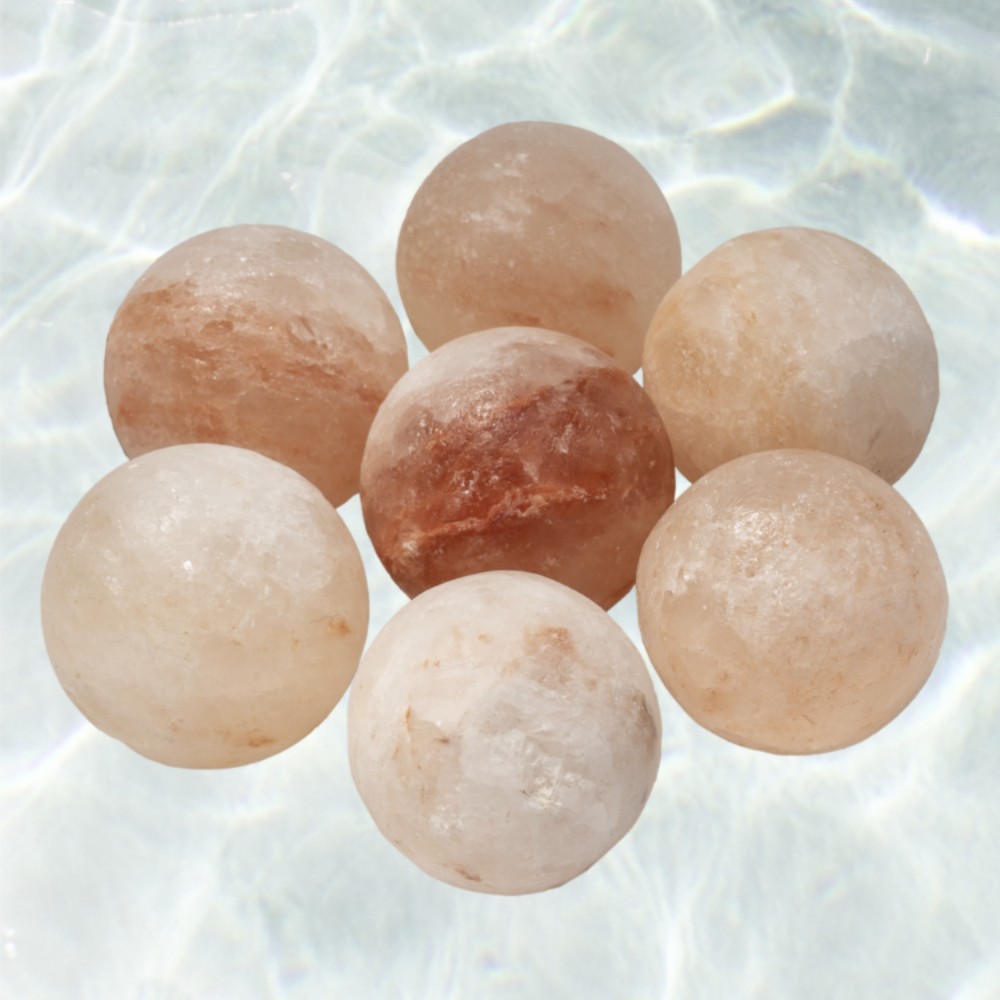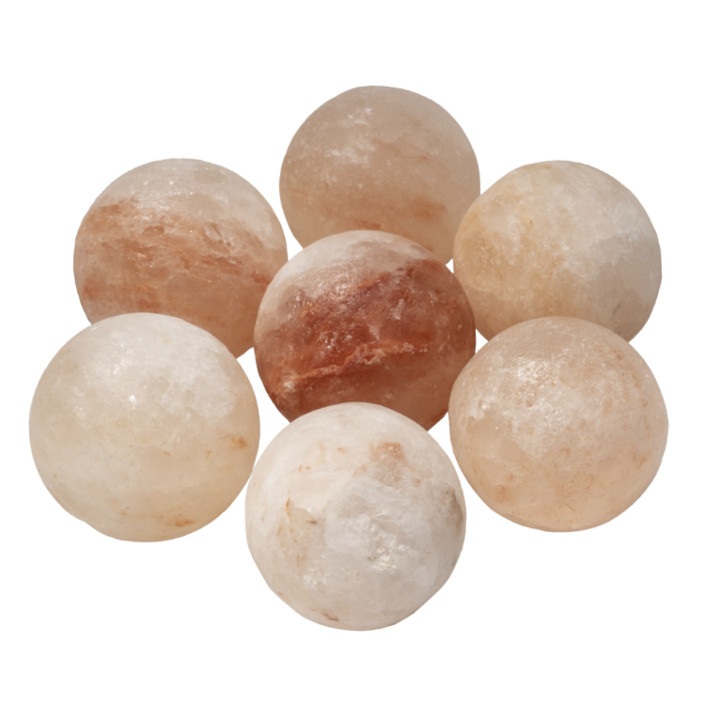 - Genuine Himalayan salt balls designed for sauna and climate control use, allowing air to pass through the salt and naturally release beneficial salt ions into the sauna environment.