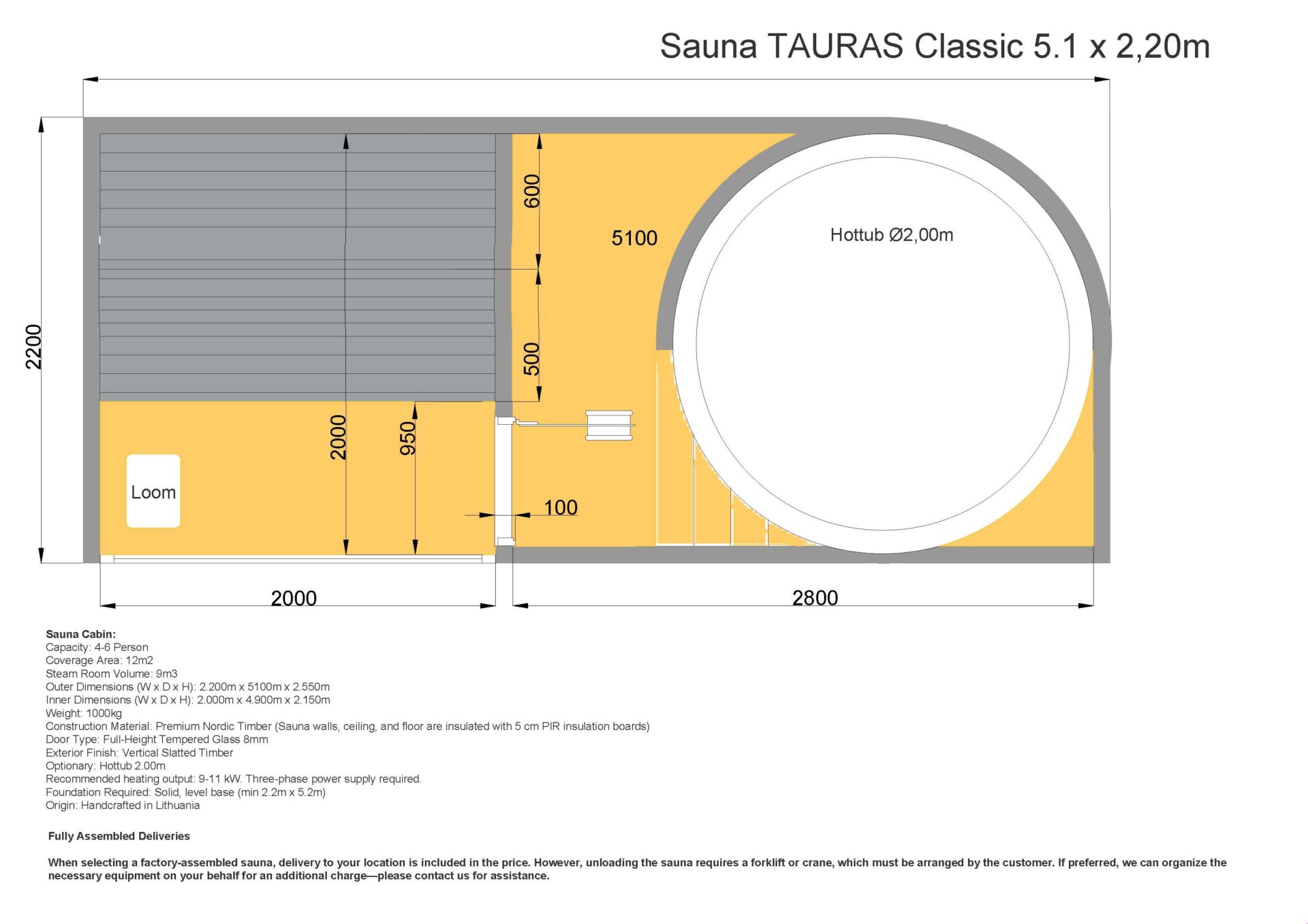 - Available without or with a Hot Tub Ø 2 m (outside) 1.85 m (inside)